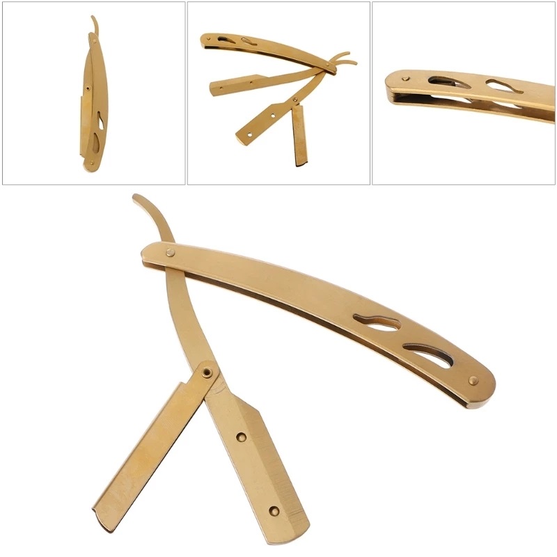 Brici metalic cu lama clasica pentru tuns / barbierit, culoare auriu